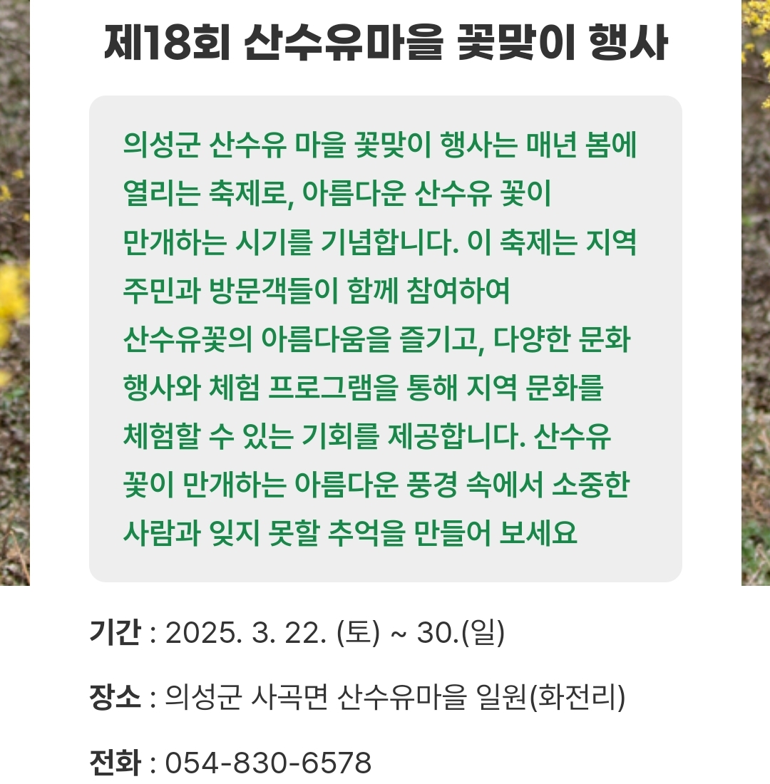 23.의성 산수유마을 꽃맞이 행사(3.22~30)취소(재난발생)
