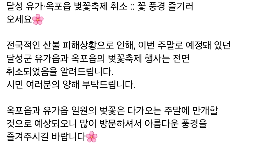 32.대구 달성군 옥포벚꽃축제(3.29~3.30)취소