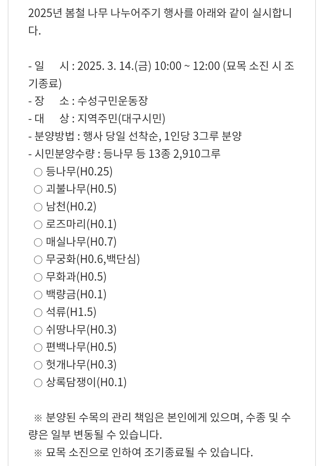 15.대구 수성구 나무나누어주기 행사(3.14)