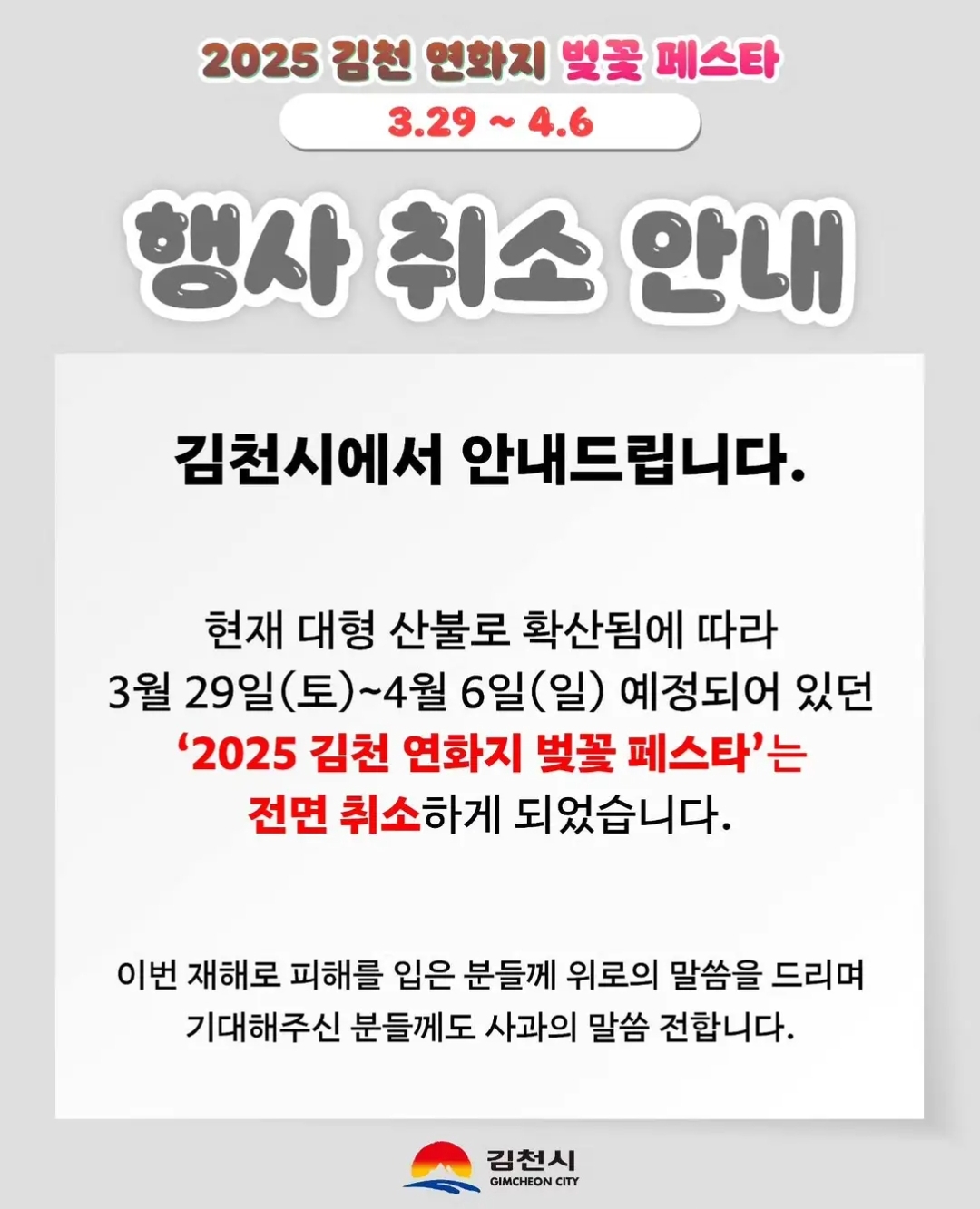 30.김천 연화지 벚꽃 페스타(3.29~4.6)취소