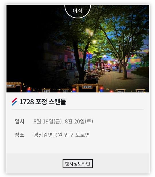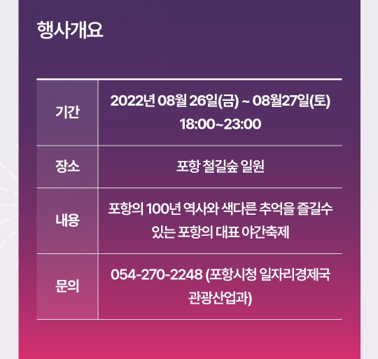 17. 포항 철길숲 야행축제(8.26~8.27. 2일간)