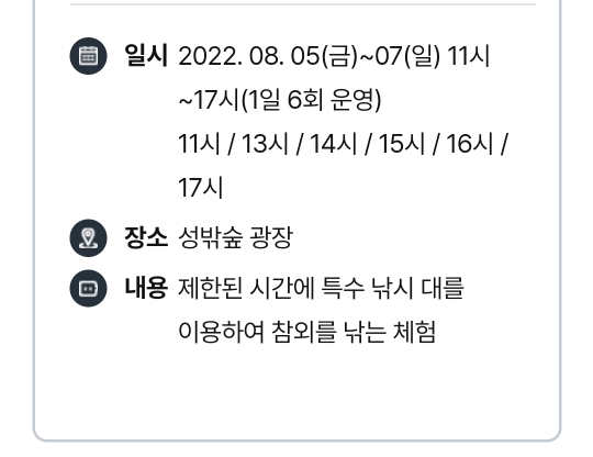 일정 : 2022.8.12(금) ~ 8.13(토) 2일간
