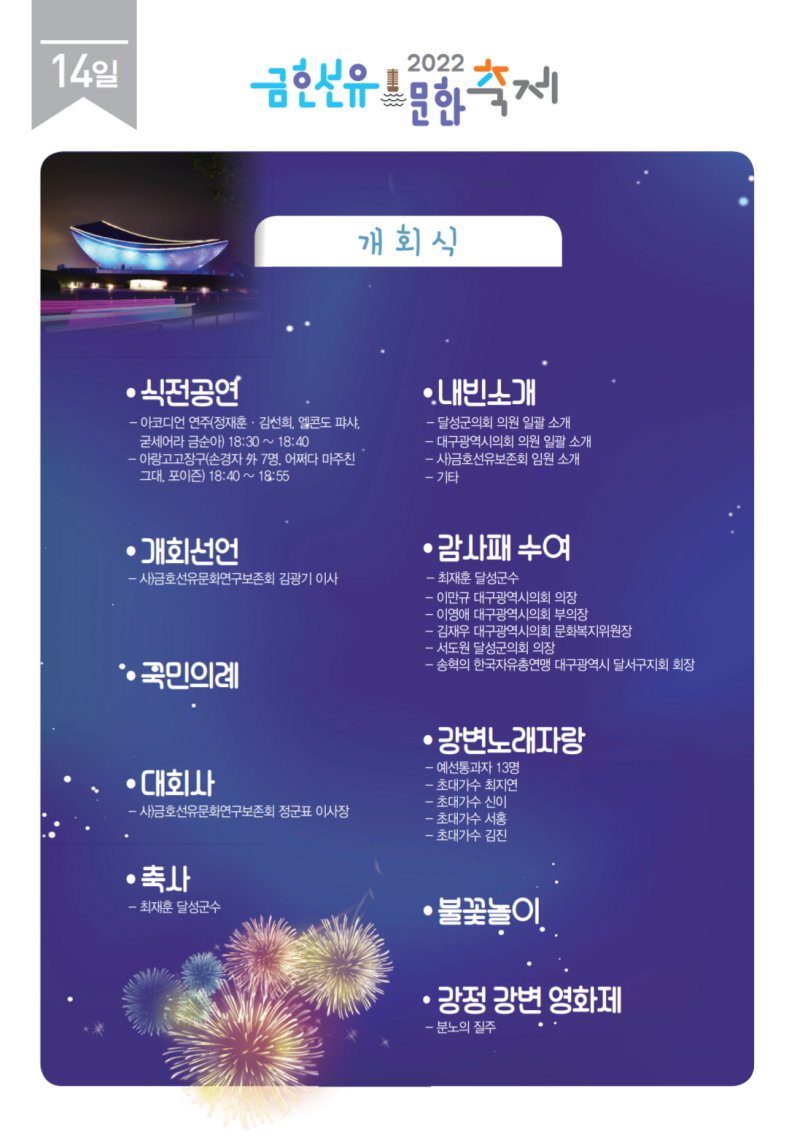 9. 대구 달성 금호선유 문화축제(8.13~8.14. 2일간)