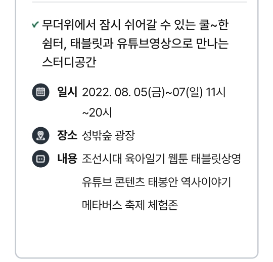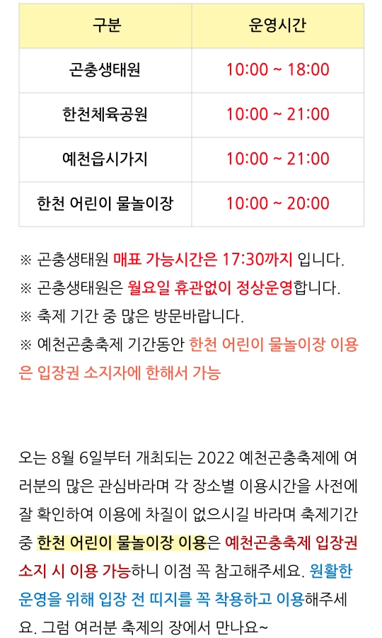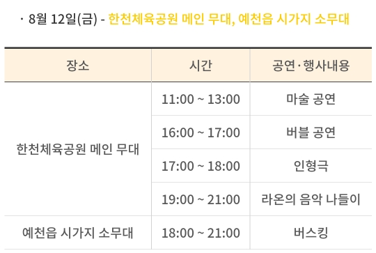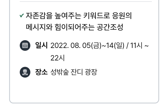 일정 : 2022.8.5(금) ~ 8.14(일) 10:00~22:00 10일간