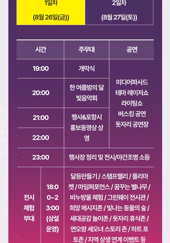 일정 : 2022.8.26(금) ~ 8.27(토) 18:00~23:00. 2일간