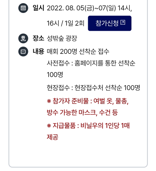 2022 성주생명문화축제 흠뻑 워터빌리지 참가신청
