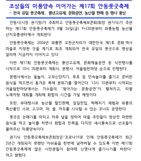 19. 안동 풋굿축제(8.26)