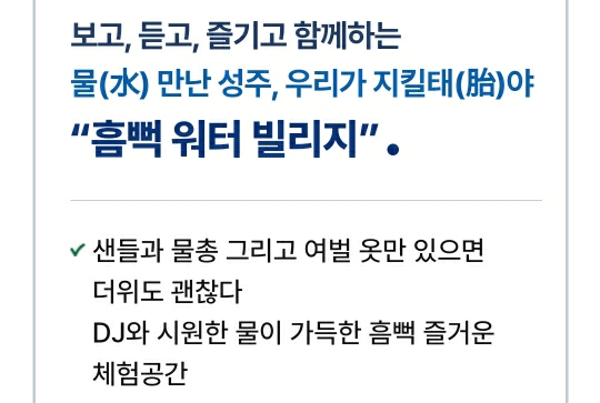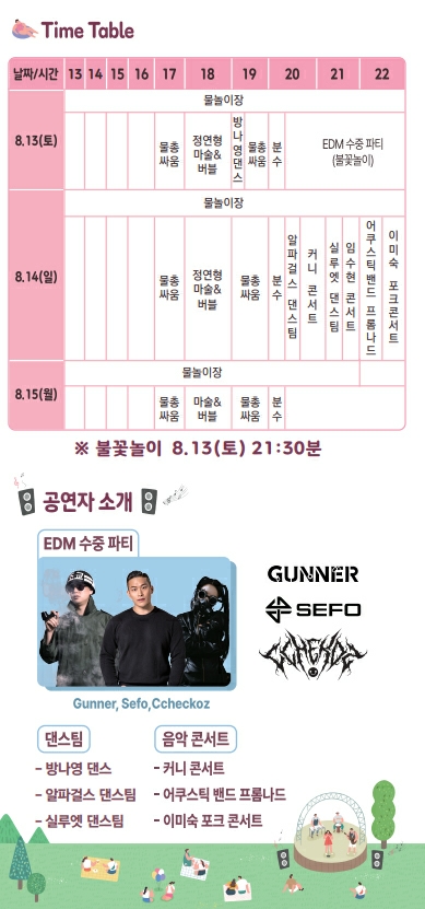 샌들과 물총 그리고 여벌옷만 준비하세요 즐거움은 성주에서 준비해 드립니다~ DJ와 시원한 물이 가득한 흠뻑 즐거운 체험