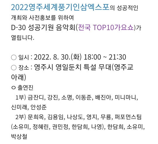 26. 영주 세계풍기인삼엑스포 성공기원 음악회(8.30)