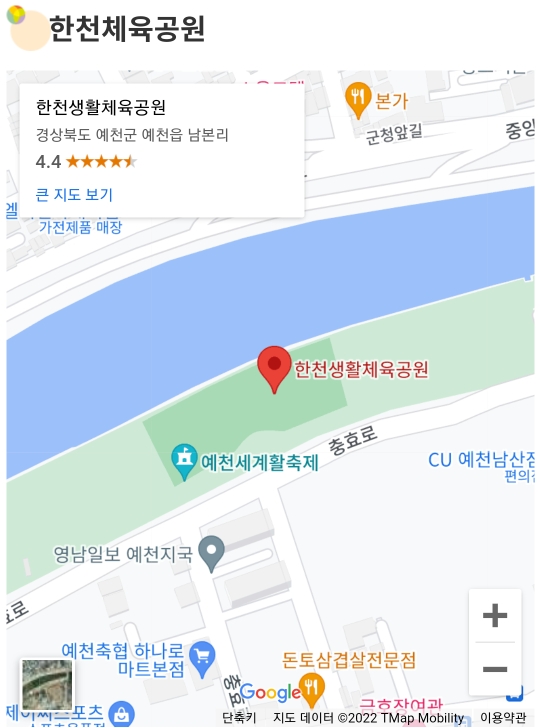 장소 : 경북 예천군 예천읍 한천체육공원 및 곤충생태원
