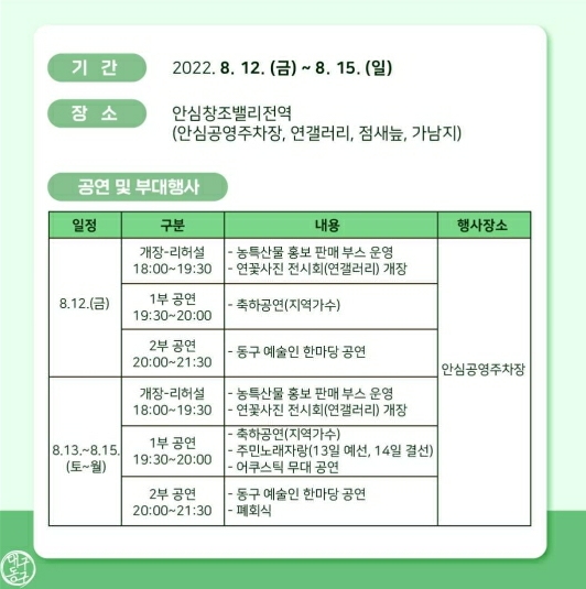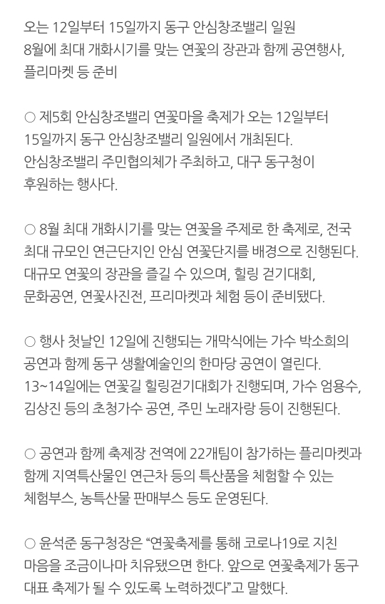 6. 대구 동구 안심창조밸리 연꽃축제(8.12~8.15. 4일간)