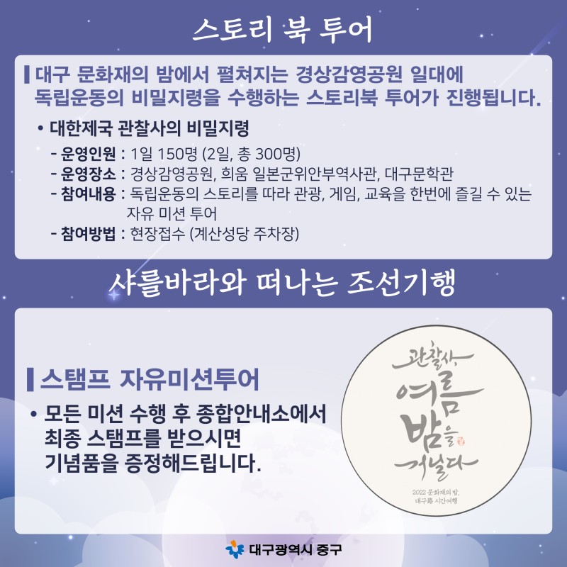 12. 대구 중구 문화재의 밤 대구로 시간여행(8.19~8.20)