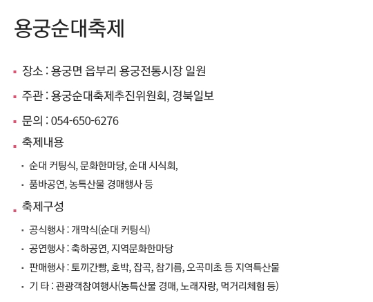 8. 예천 용궁순대축제(8.13~8.14. 2일간)