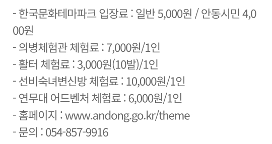 장소 : 경북 안동시 도산면 한국문화테마파크 (유료입장)