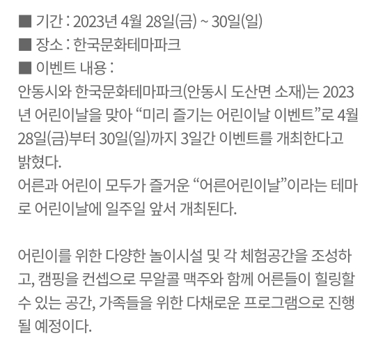 | 2023 경북 어린이날 행사 (0) | 2023.04.27 |