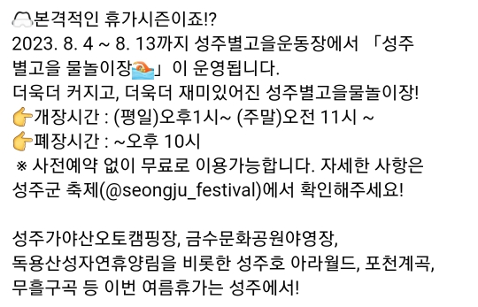 6. 성주 별고을 물놀이장(8.4~8.8)조기폐장