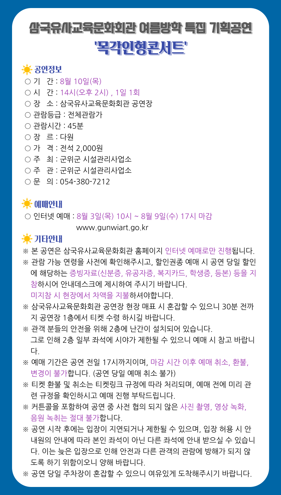 11. 대구 군위 목각인형콘서트&보물섬(8.10)유.무료