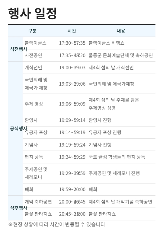9. 울릉 섬의 날(8.8~8.11)취소(태풍영향)