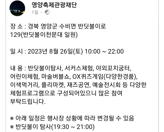 49. 영양 별빛 반딧불이 축제(8.26)
