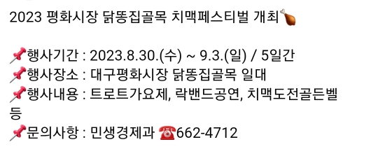 53. 대구 동구 평화시장 치맥페스티벌(8.30~9.3)