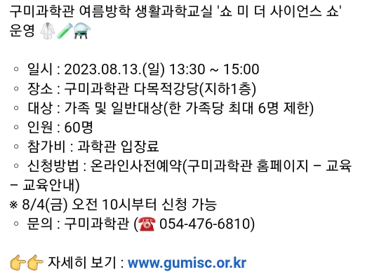 23. 구미 쇼미더 사이언스쇼(8.13)선착순 신청