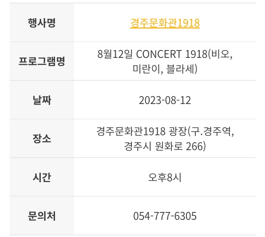 16. 경주 문화관 1918 8월 콘서트(8.12)