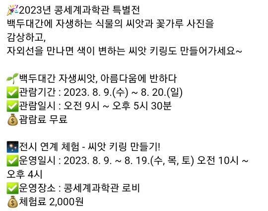 일시 : 2023.8.9(수) ~ 8.20(일) 유.무료