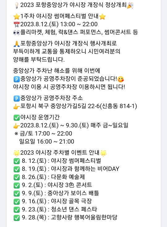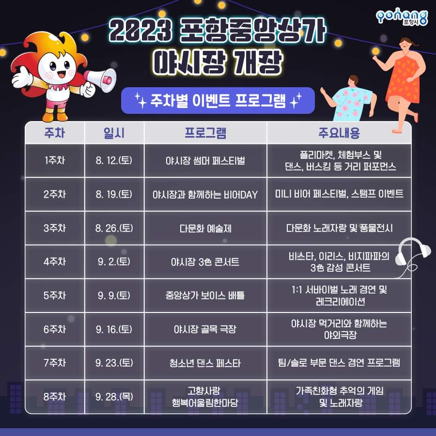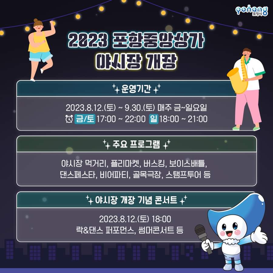 22. 포항 중앙상가 야시장 축제(8.12~9.30)매주 금~일