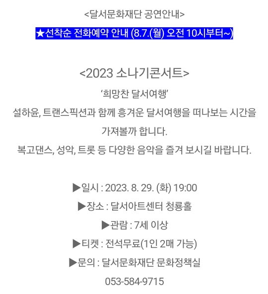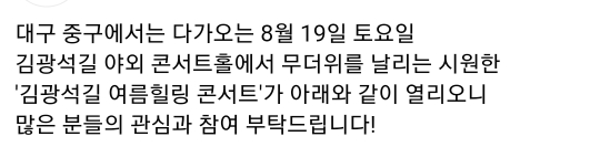 51. 대구 달서구 소나기 콘서트(8.29)8.7오전10시 선착순