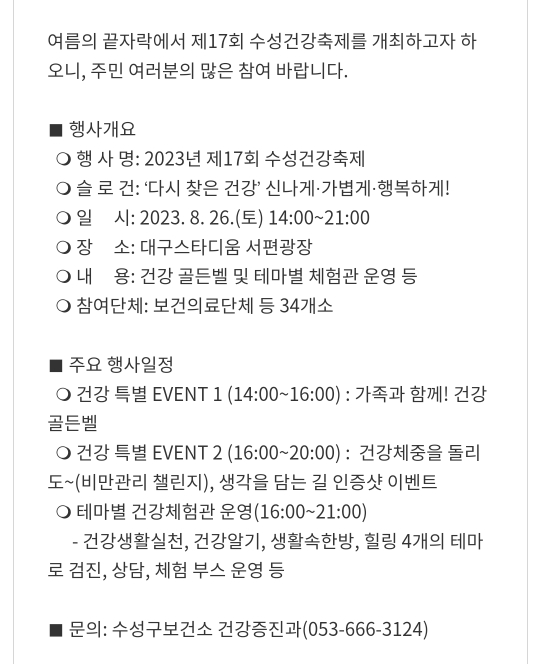 48. 대구 수성구 수성건강축제(8.26)