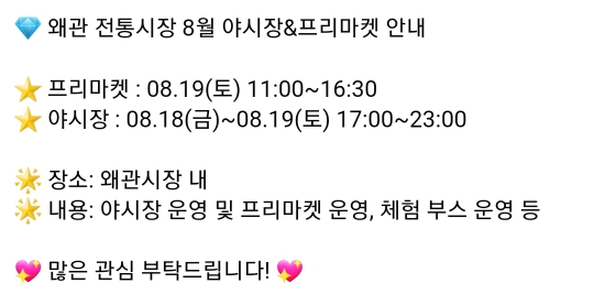 32. 칠곡 왜관 전통시장 야시장&프리마켓(8.18~8.19)