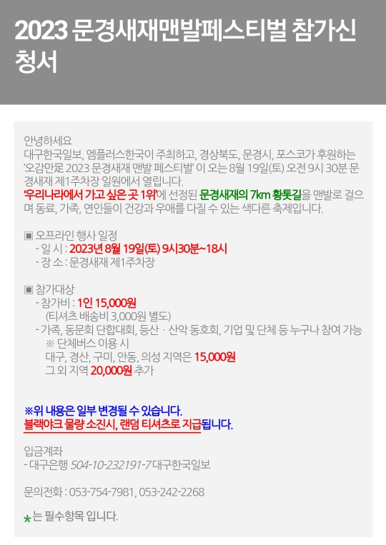 37. 문경 문경새재 맨발페스티벌(8.19)유료,사전접수