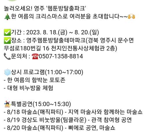 31.영주 웹툰방탈출파크-한여름밤 크리스마스(8.18~20)