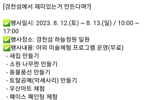 17. 상주 경천섬 하늘여행&야외체험 외(8.12~13)유.무료