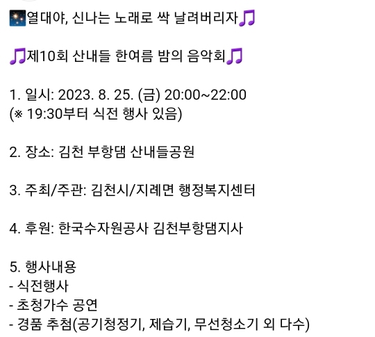 41. 김천 산내들 한여름 밤의 음악회(8.25)