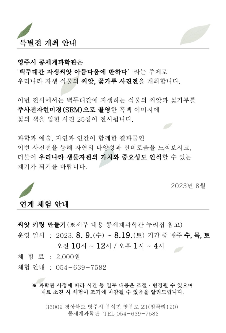 10. 영주 콩세계과학관 전시 및 연계체험(8.9~20)유.무료