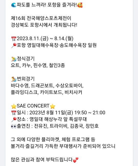 15. 포항 전국해양스포츠제전(8.11~8.14)