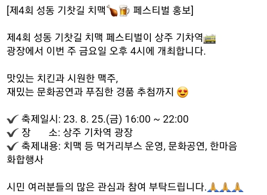 43. 상주 성동 기찻길 치맥 페스티벌(8.25)