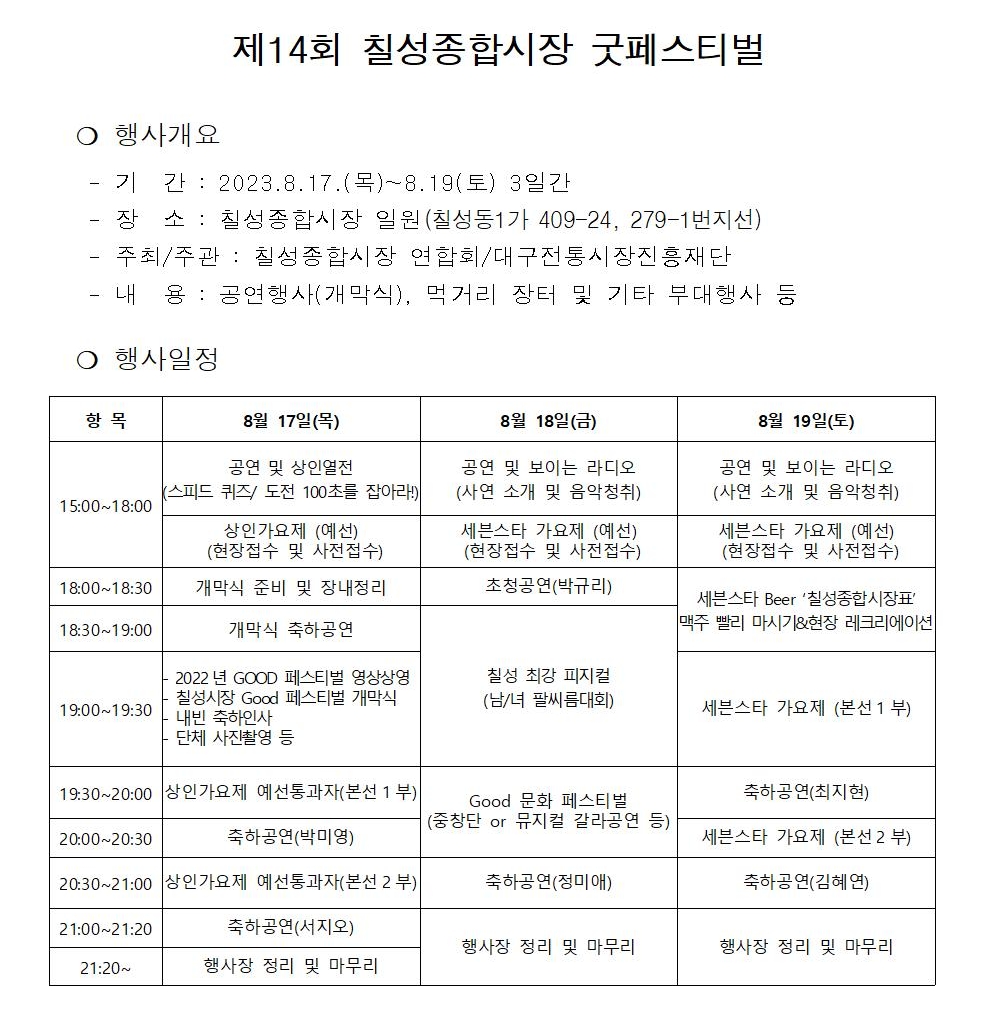 27. 대구 북구 칠성시장 굿 페스티벌(8.17~8.19)