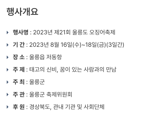 26. 울릉 울릉도 오징어축제(8.16~8.18)
