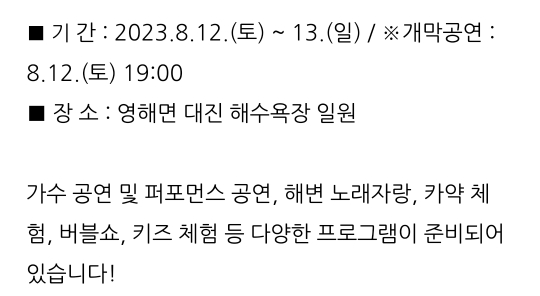일시 : 2023.8.4(금) ~ 8.6(일)