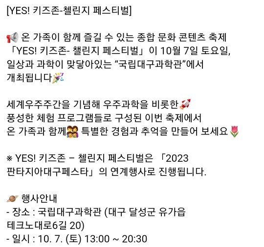23. 대구 달성군 대구과학관 YES! KIDS ZONE(10.7)