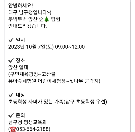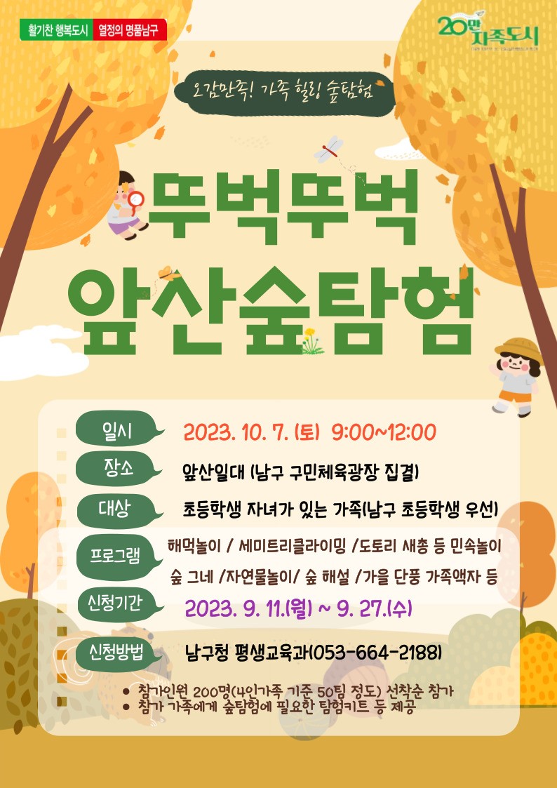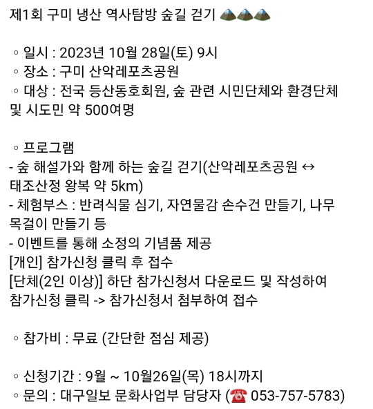 20. 대구 남구 뚜벅뚜벅 앞산숲탐험(10.7)9.11~선착순