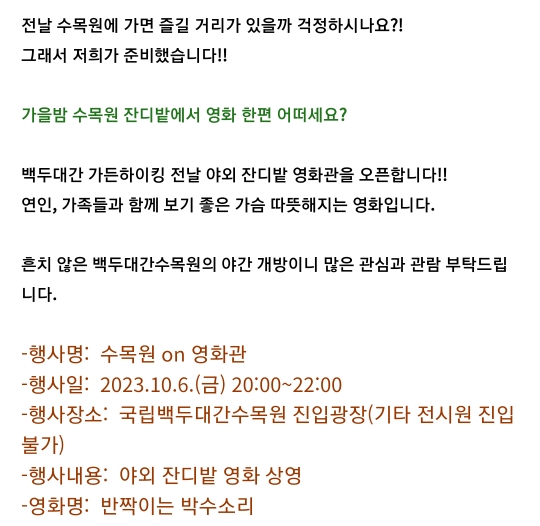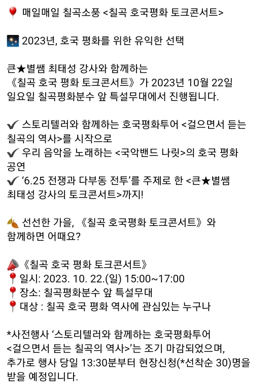일시 : 2023.10.28(토) 오후 2시/ 사전접수필, 참가비있음
