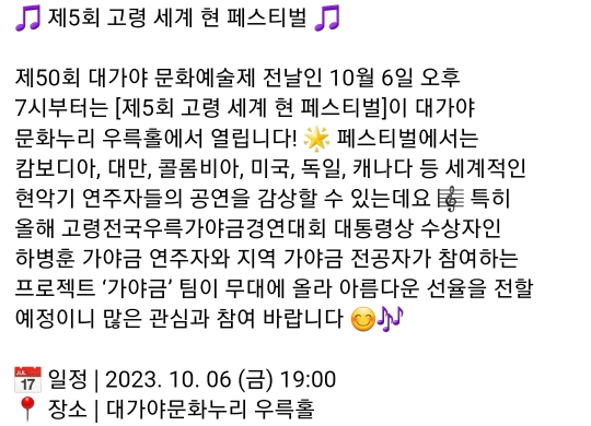 9. 고령 세계 현 페스티벌(10.6)선착순 무료