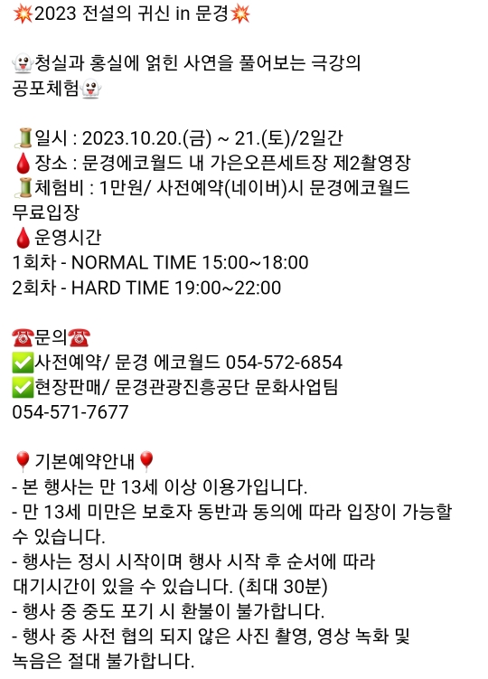 86. 문경 에코월드 전설의 귀신 in 문경(10.20~21)유료
