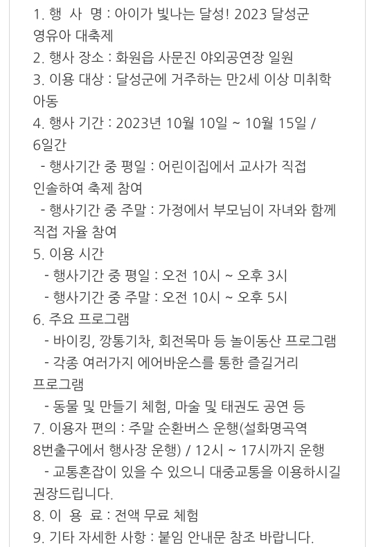 48. 대구 달성군 아이가 빛나는 영유아 대축제(10.10~15)