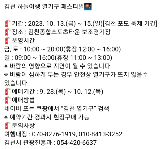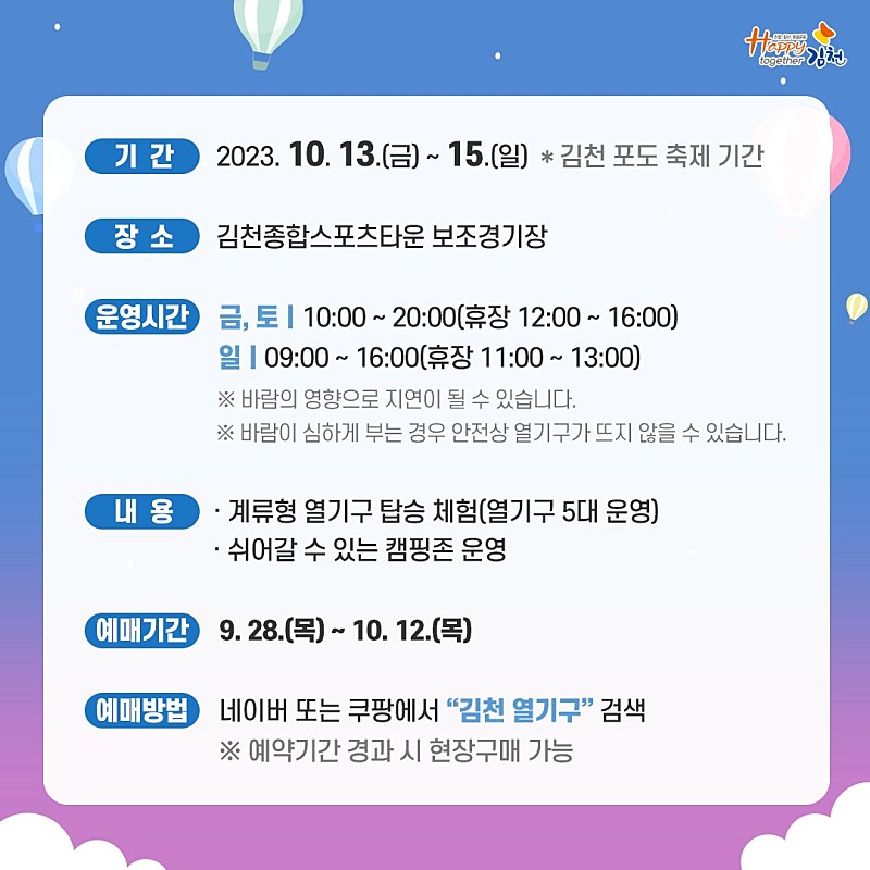 56. 김천 하늘여행 열기구 페스티벌(10.13~10.15)유료