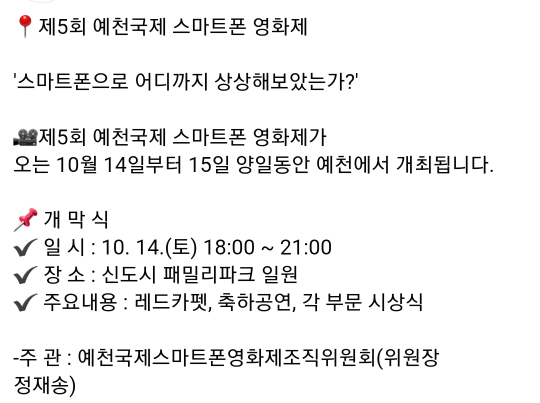 76. 예천 국제스마트폰영화제(10.14~10.15)