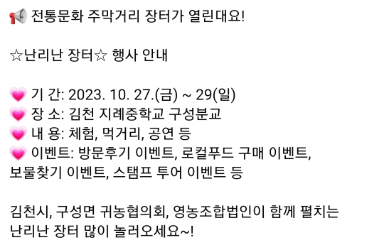 일시 : 2023.10.28(토) ~ 10.29(일) 10:00~16:00